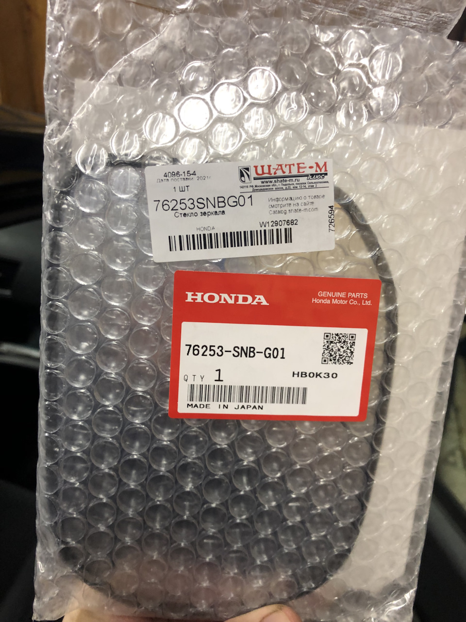 76253SNBG01 ЗЕРКАЛЬНЫЙ ЭЛЕМЕНТ L Honda Запчасти на DRIVE2